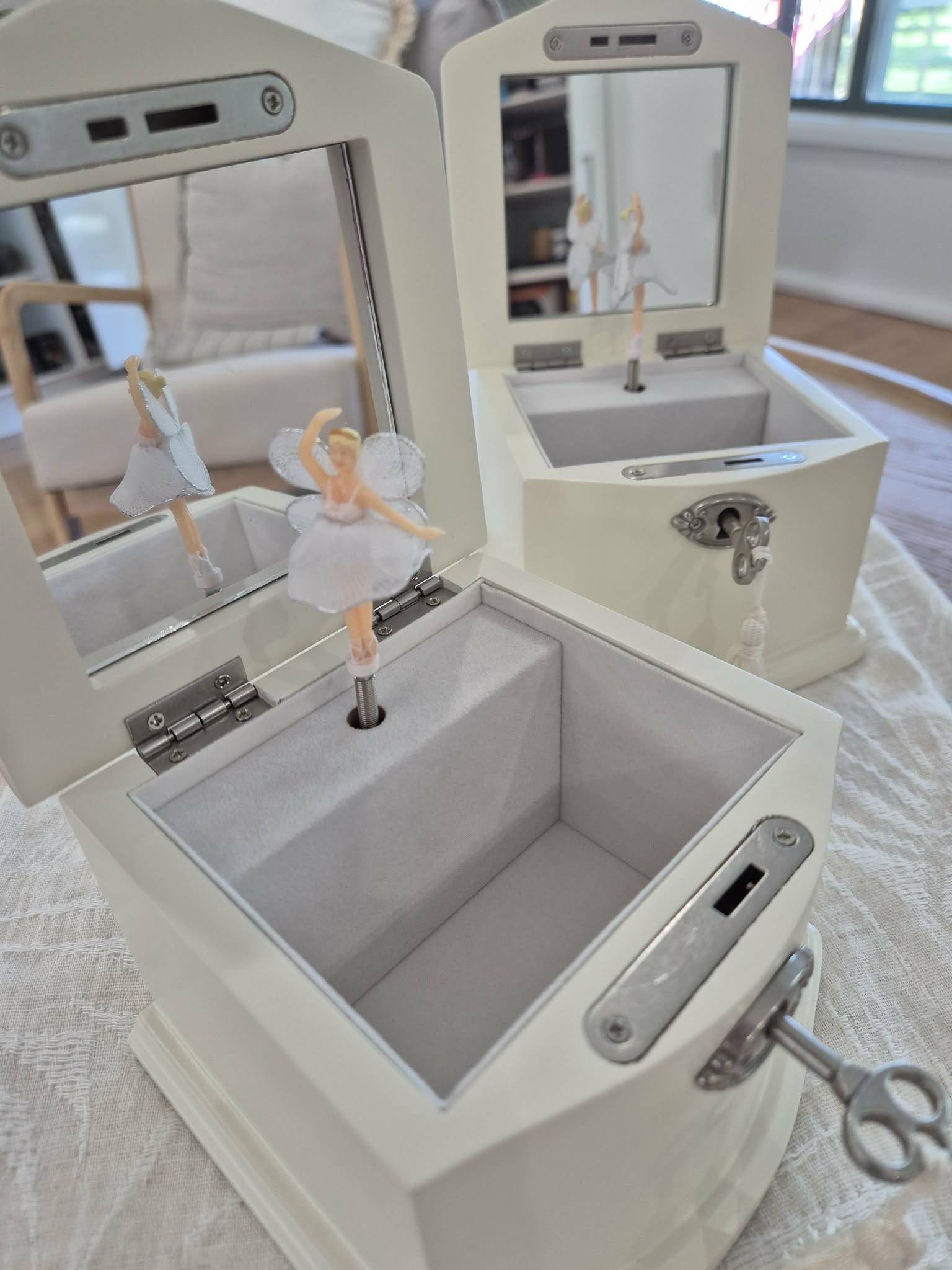 Lift the lid and a graceful ballerina twirls gently to a sweet, tinkling melody — a moment of everyday enchantment that feels like something from a storybook. With its smooth wooden finish and charming design, it’s the perfect keepsake for precious bracelets, sparkly rings, and secret treasures.